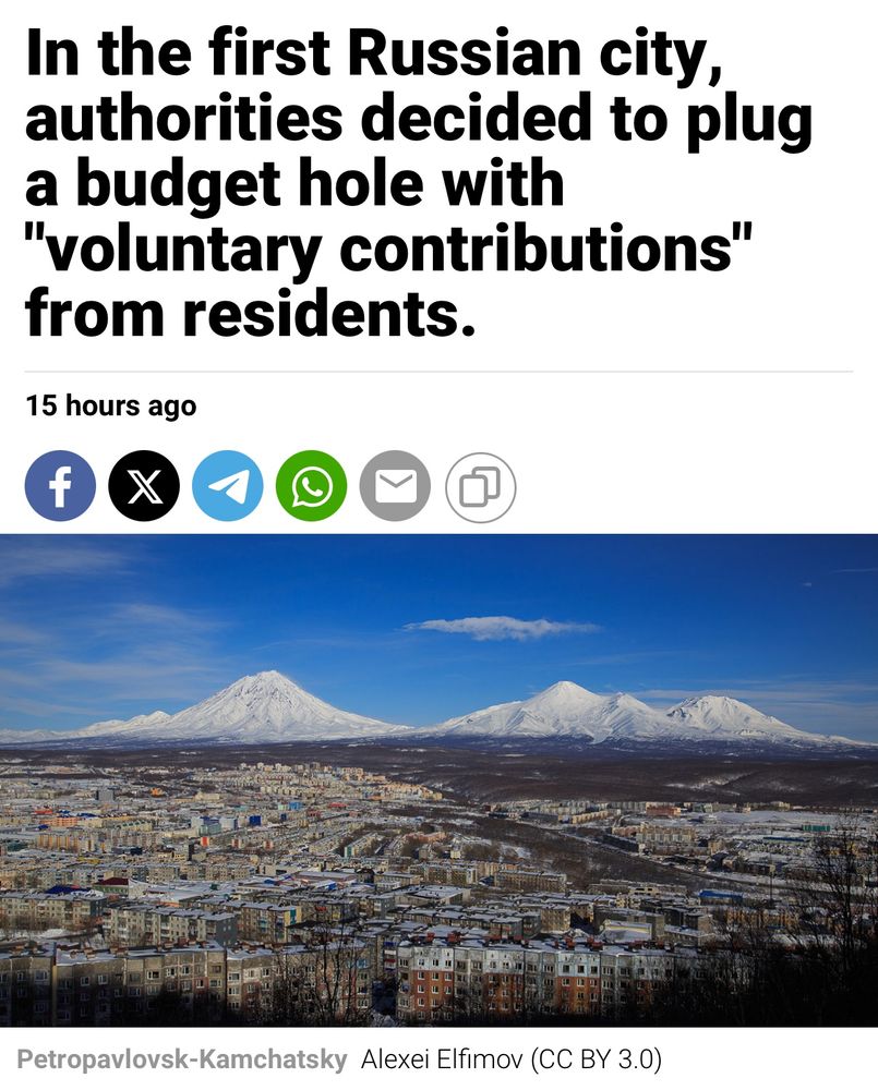 ‼️ Russia: “The authorities of Petropavlovsk-Kamchatsky have announced the start of a collection of "voluntary contributions" from residents and businesses to replenish the city budget.”