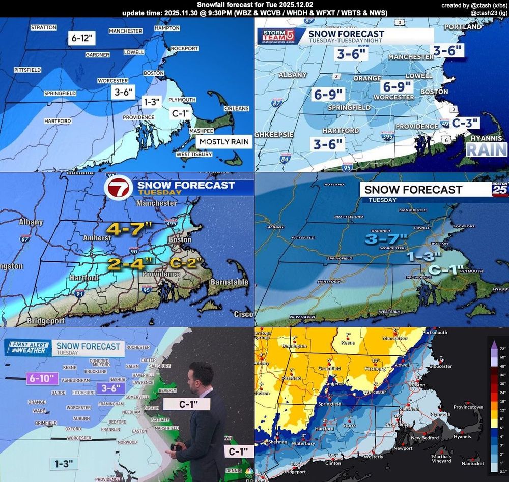 Snowfall forecast for Southern NE - 2025.11.30 @ 9:30PM WBZ (4) & WCVB (5) / WHDH (7) & WFXT (25) / WBTS (10) & NWS