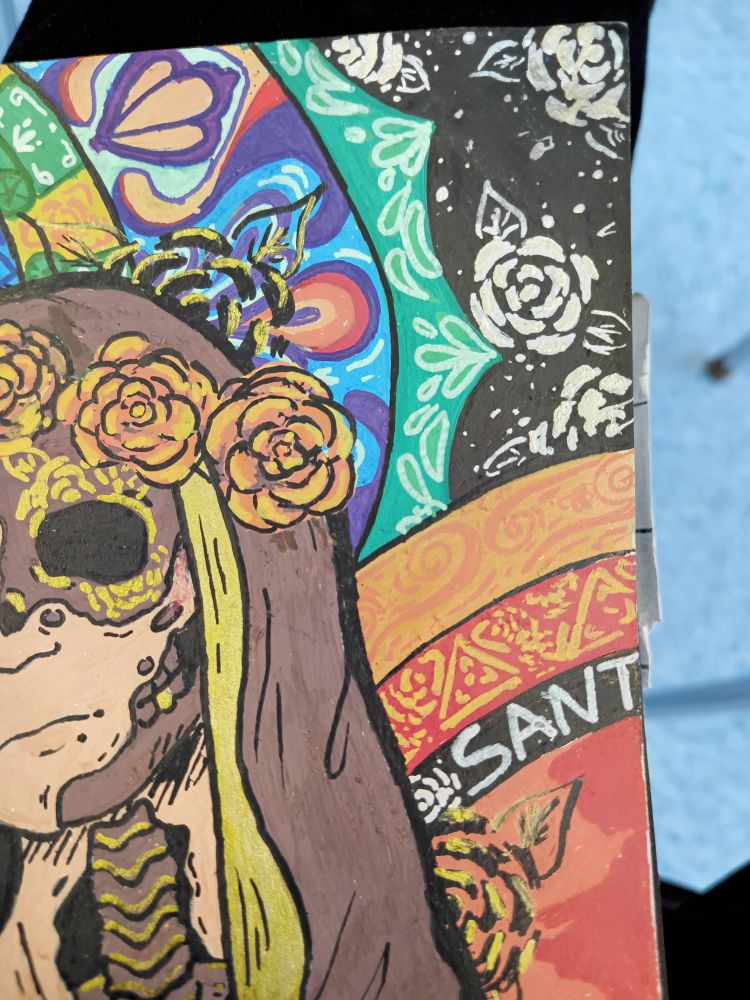 It was inspired by @aidenschmaiden.bsky.social Cemetery Boys version of La Santa Muerte