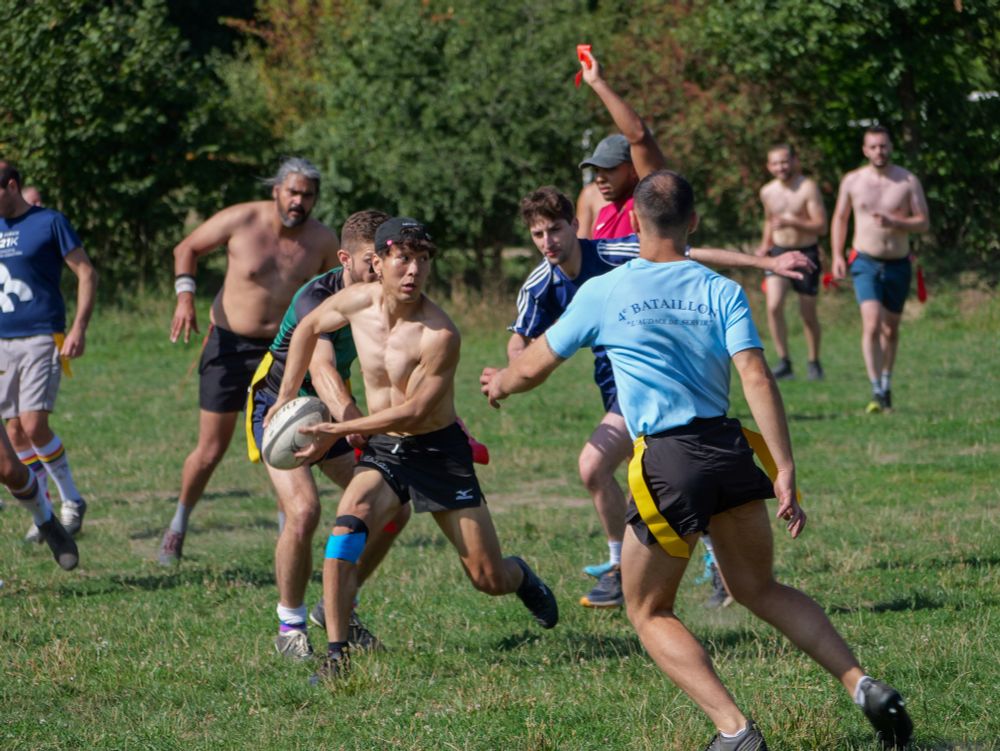Ça bronze et ça transpire ! 🏉☀️Tous les samedis matin, les Coqs Festifs vous attendent pour le rugby d’été.