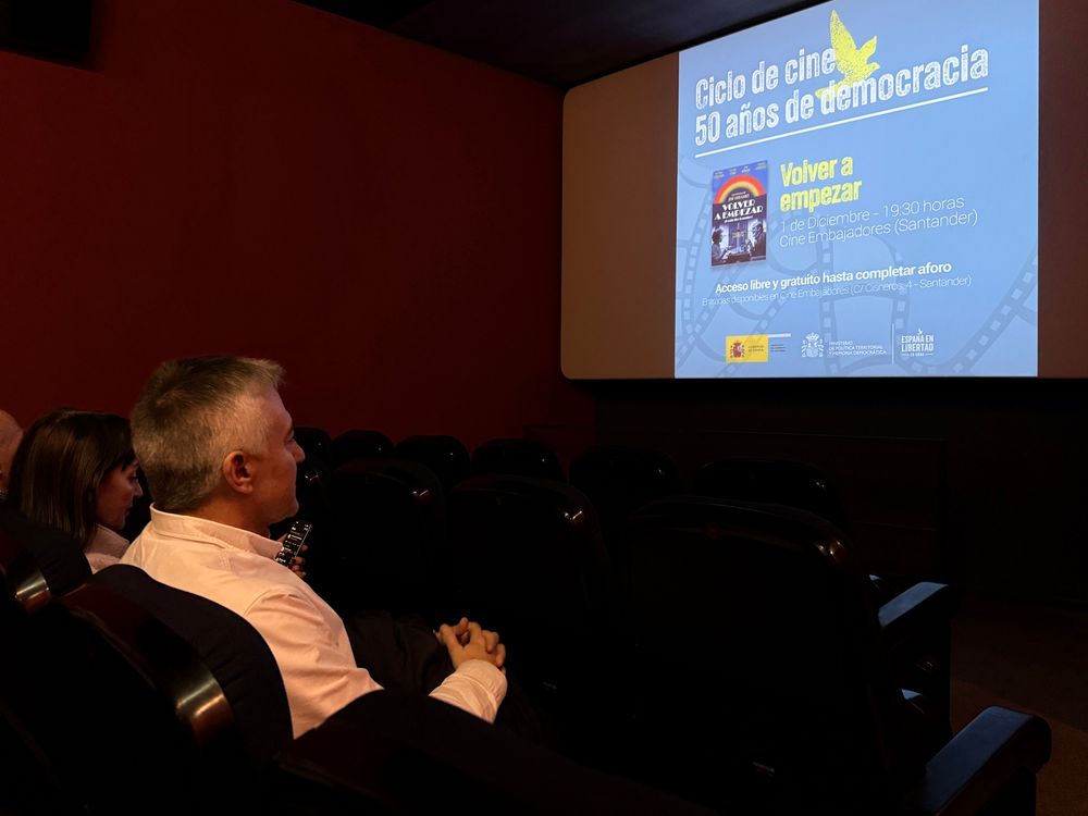Hoy fue 'Volver a empezar', de Garci. Con una sala llena y con la presencia del secretario general de la Delegación, Santiago García. 🎞️