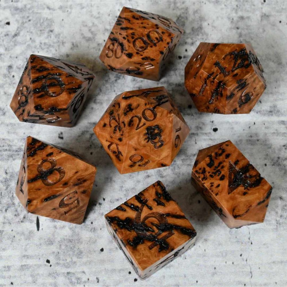 Dye stabilized Birch burl wood dice set #dice #ttrpg