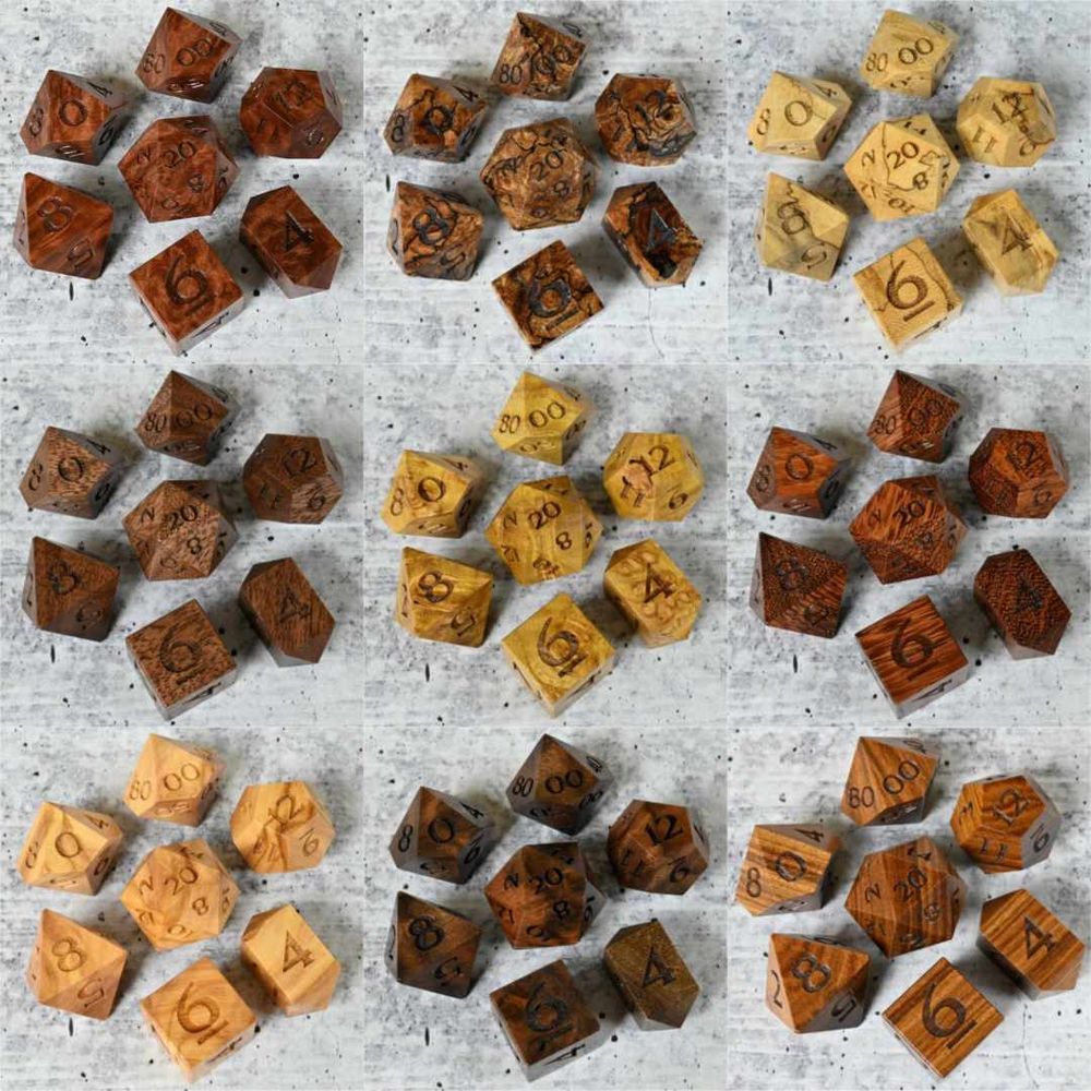New dice are in the shop! I've added a bunch of wood d20s and a small selection of wood sets and hybrid sets to the site. #dice