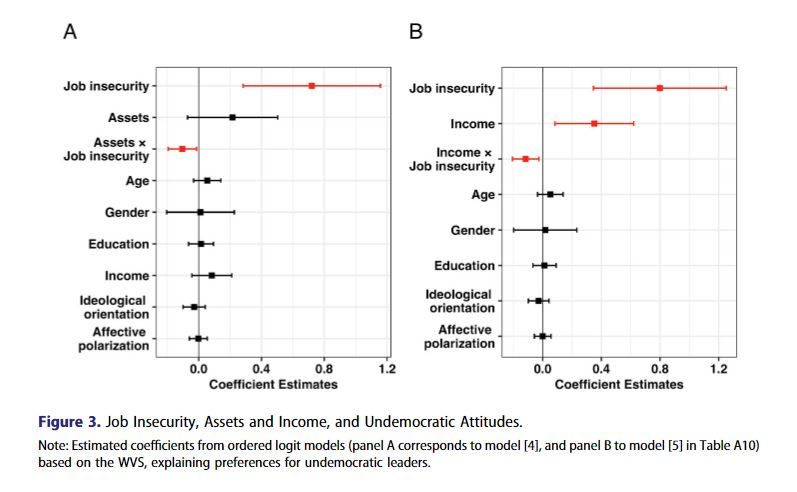 Job insecurity is associated with support for strong undemocratic leaders not subject to legislative checks and balances. Enhancing job security and expanding public welfare provisions could bolster citizens’ democratic attitudes and behaviours. @hkwon0301...