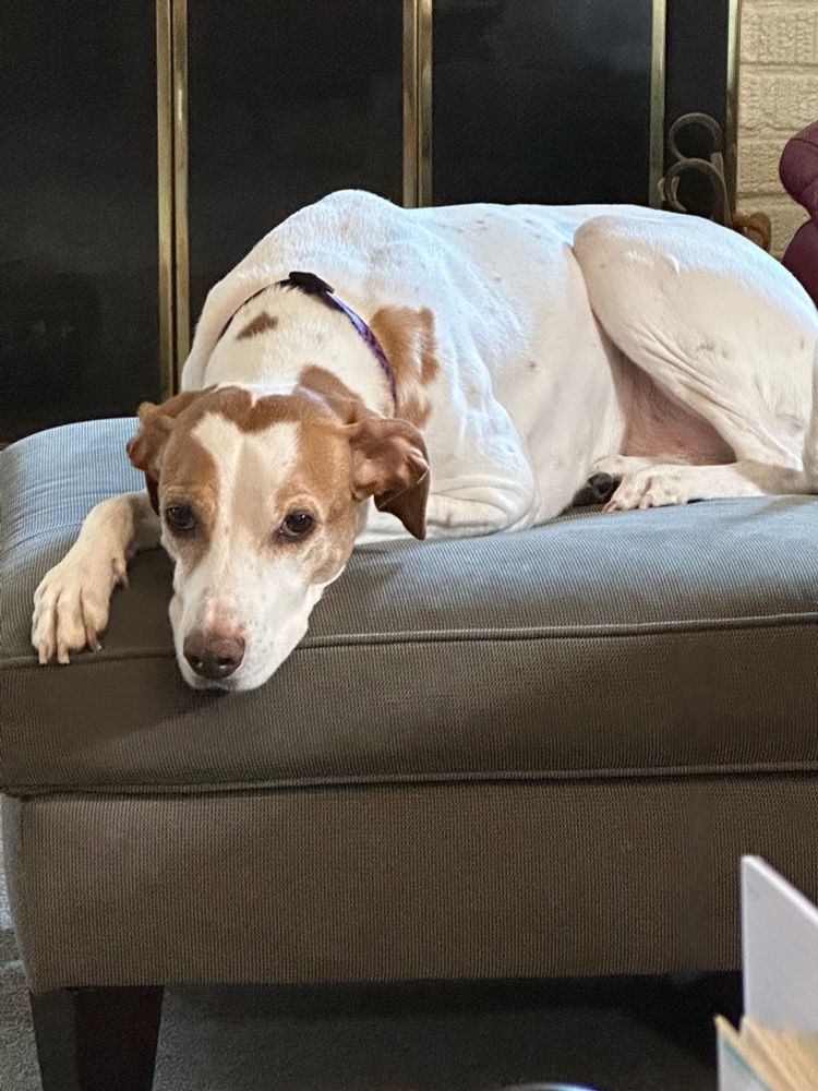 Since we adopted her - she’s about 7 years old - all is a learning curve for what scares her - she is a happy girl who loves to snuggle!