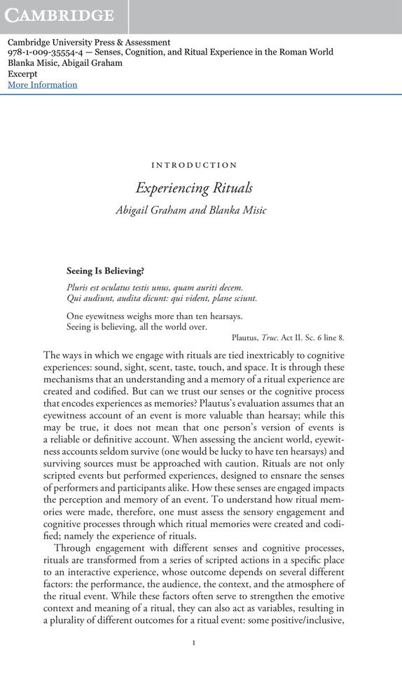 📢 My own chapter from our recent book ‘Senses, Cognition, and Ritual Experience in the Roman World’ is now available to read and download for FREE on CUP website until April 24th, 2024 at the link below 👇