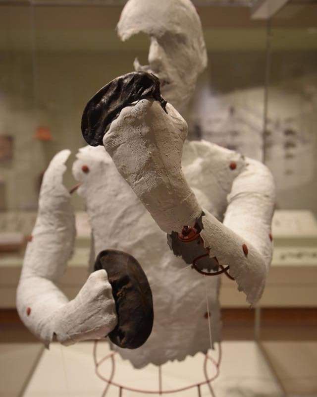 When the lamp was discovered, it still contained sooty substances on a magma of fine dust. These particles were tested and determined to be the remains of a juniper wick used for ignition.