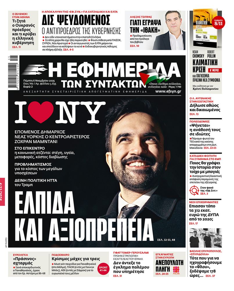 Το πρωτοσέλιδο της «Εφημερίδας των Συντακτών - Σαββατοκύριακο»