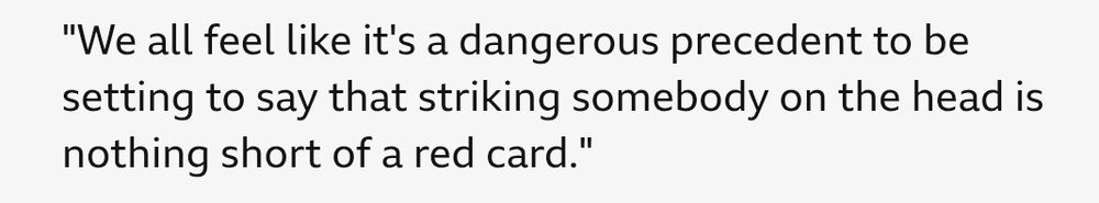 I suspect this boy may not be the brightest. Says it's for "one reason and one reason only" then gives 4 reasons. Also seems to say that giving a red for kicking in the head is a dangerous precedent when I think he means the opposite.