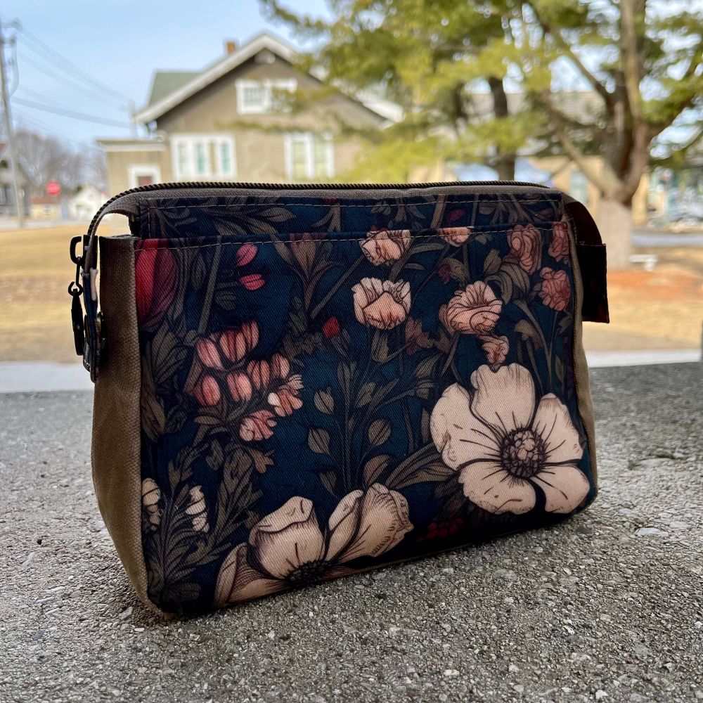 Here’s the small version of the #ploverpouch (@noodlehead531) in lightweight twill and waxed canvas. #bagmaker #waxedcanvas #moodyfloralfabric #wisconsinmade #sewersgonnasew #sewersofinstagram