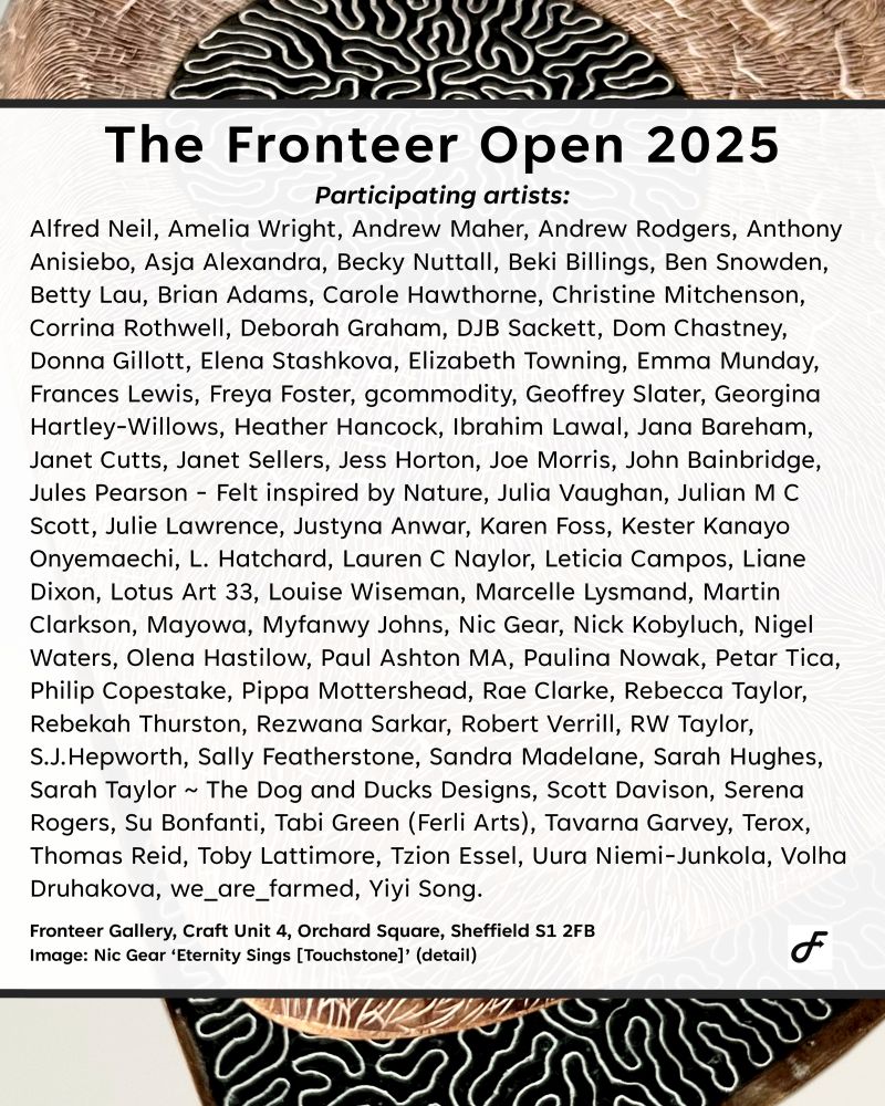 Join us for the Fronteer Open 2025, which opens with a Private View next Saturday (8th) from 4-6pm. The PV will give you a chance to see the show, meet some of the artists, enjoy a drink and vote for your favourite work. Free entry, all welcome! 🥂🎨