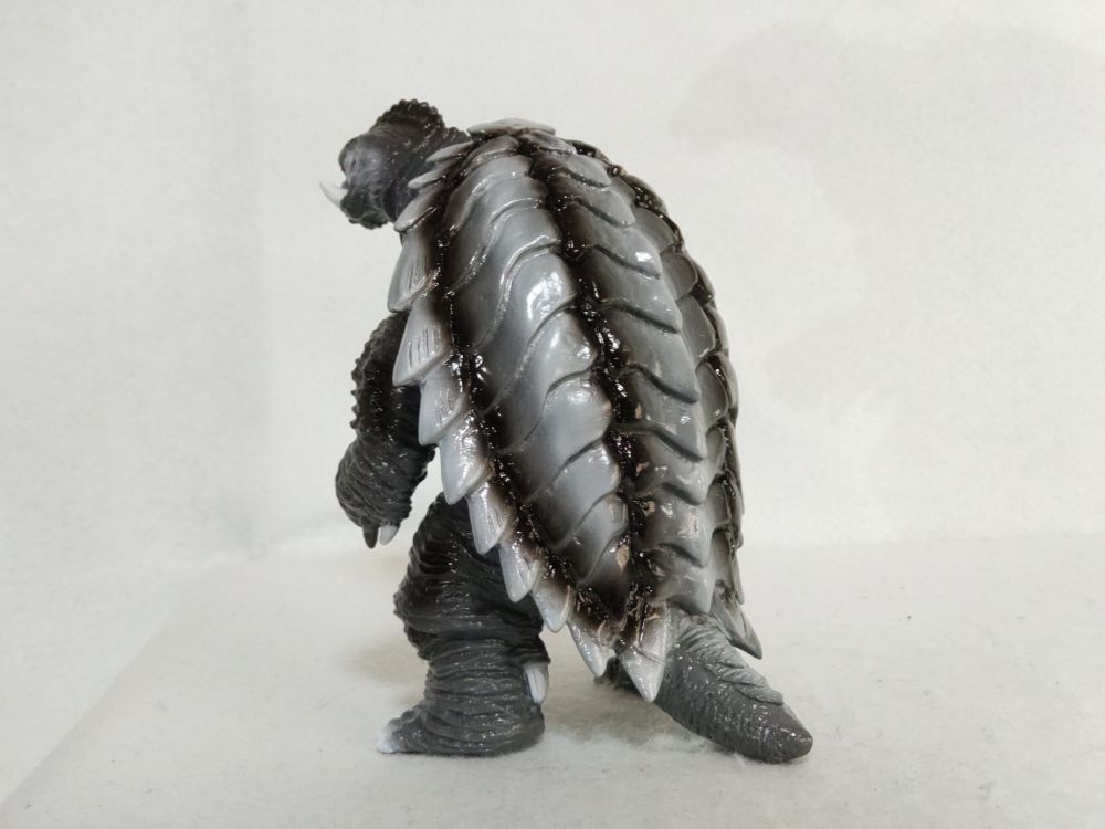 可動は最低限、頭と首の付け根と股関節と尻尾の付け根。でもこの手の玩具にしてはけっこう動く方では?大きさはやや小ぶりでHiyaToysのギャレゴジと比べてこんな感じ(ムビモンより小さい)