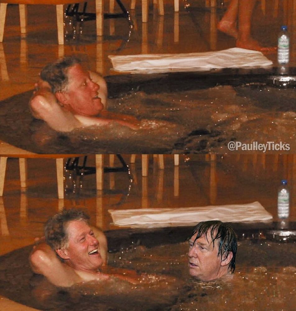 The Clinton Epstein Jacuzzi photo has been hacked with Trump in it too! Too funny!