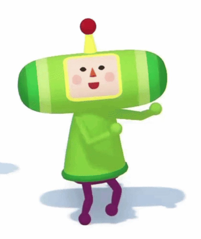 ALT: a green robot with a yellow head and a red ball on top