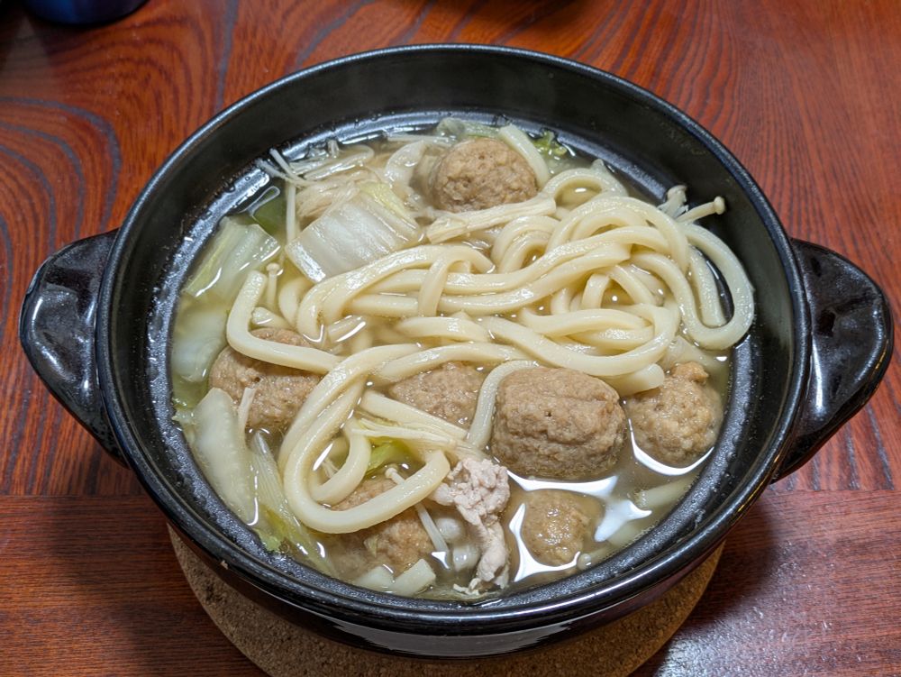 今日も寒かったから1人土鍋でうどんを妻が作ってもらいました😋