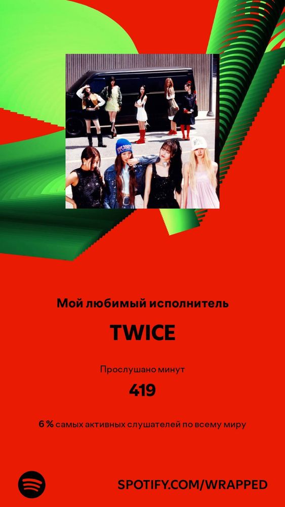 Стабильность - это хорошо. И как бы моя любимая группа ред вельвет, но никогда их песни не стояли на повторе и вельветки не попадали в топ любимых групп. Но вот твайс там есть всегда. Хз какой год подряд