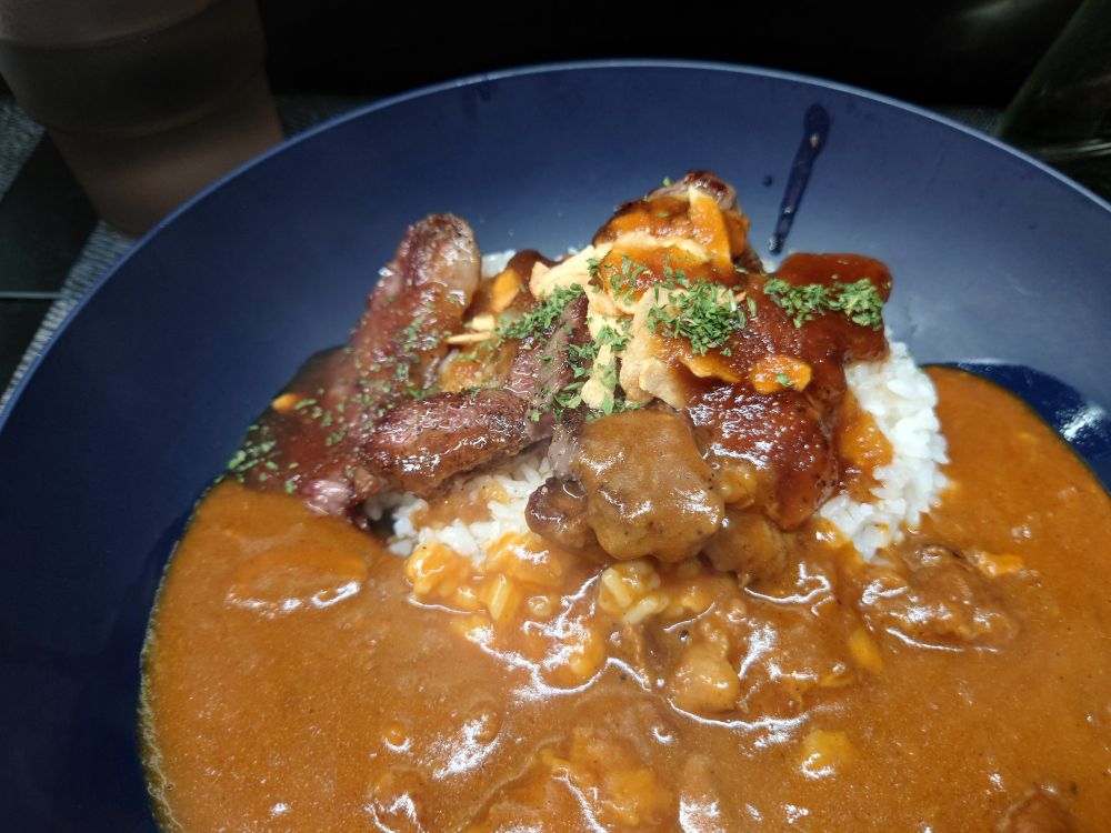 肉の乗ったカレーが食べたかったので、NIKOに行き、合い掛けカレー(ワンコイン)を食べました♪