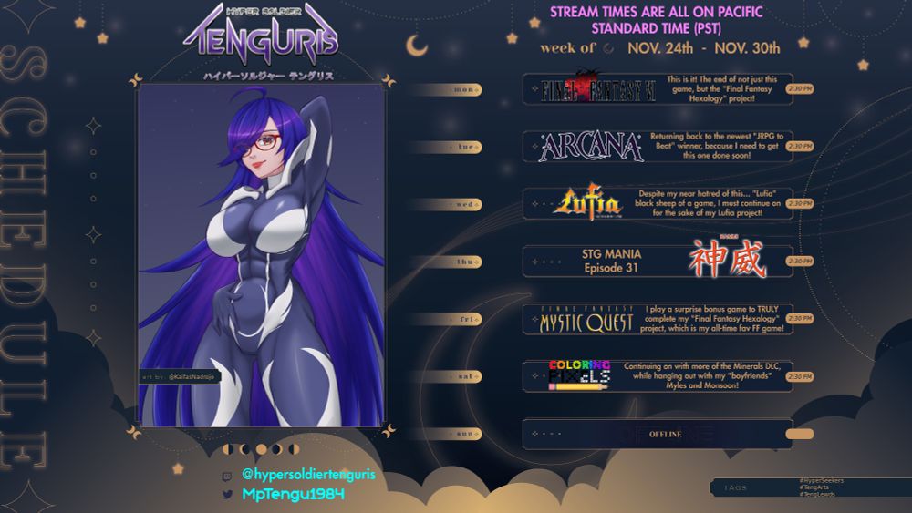 Finishing up FF: Mystic Quest and Arcana; Lufia: Ruins of Lore, Episode 32 of "STG Mania", Coloring Pixels, and more HELLDIVERS II with @hantomei.bsky.social, @researcherpie.bsky.social, @moranareaper.bsky.social and Monsoon Raccoon!