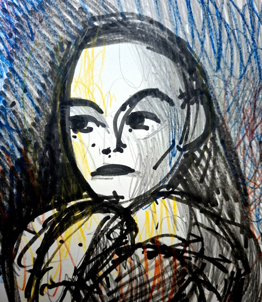 #draweveryday #everyday " #woman looking down at the #floor 06 " from #line of #action pose coloured pencils on paper, #art #lifedrawing #observational
