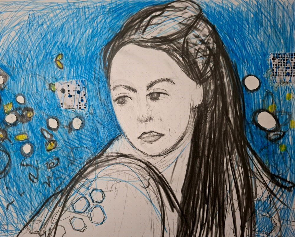 #draweveryday #everyday " #woman looking down at the #floor