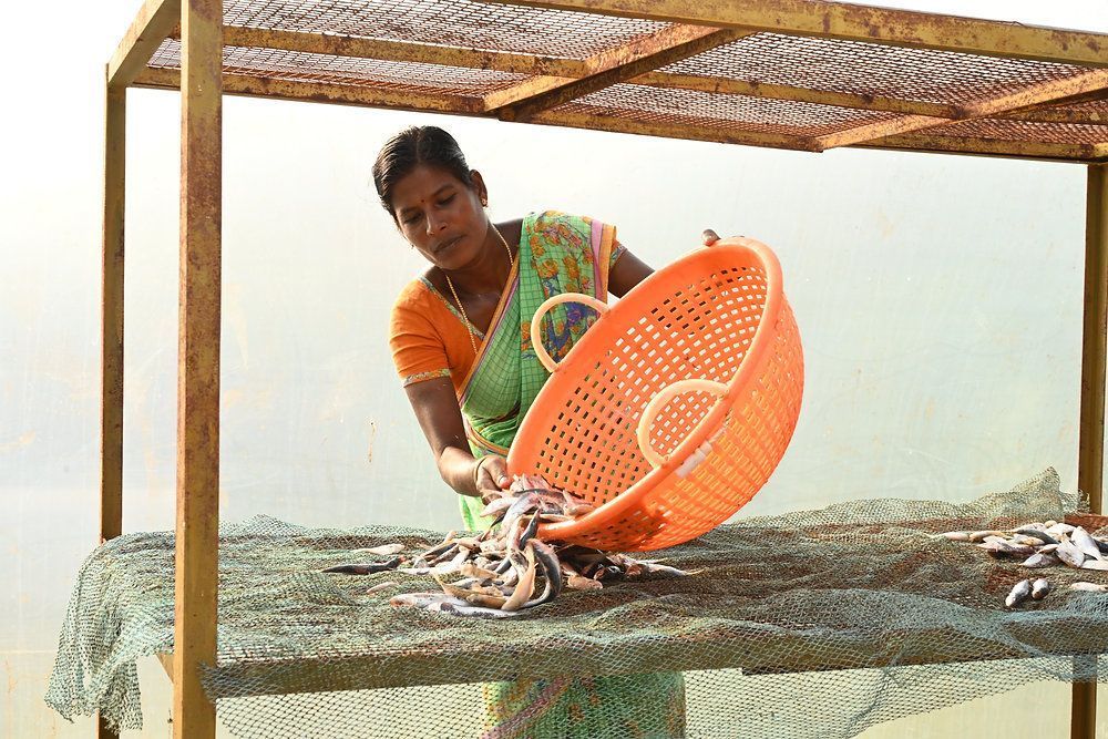 In rural Tamil Nadu, fish is dried through solar power.