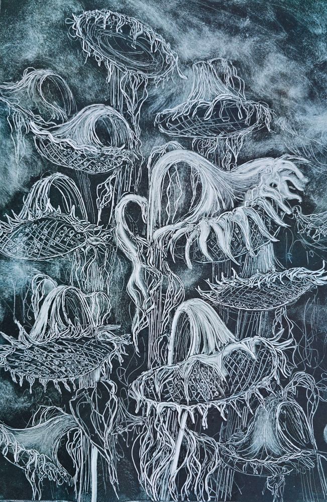 One of my monoprint demo prints from a recent 2 day workshop.