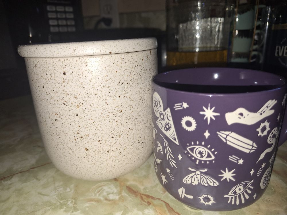 My sister got me a beautiful coffee mug and a large amber & bergamot candle for my bday yesterday. So excited!