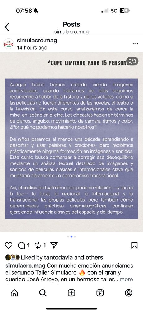 I'm delighted to collaborate with Julia Scrive-Loyer and Simulacro to deliver a series of lectures --five, one one a day, in Spanish -- on Warwick-style film studies to students in Latin America: