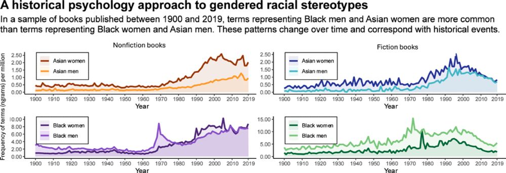 @joannaschug.bsky.social leads a paper on gendered racial stereotypes. They show that the civil rights movement coincided with a rise in language about black men, but not black women