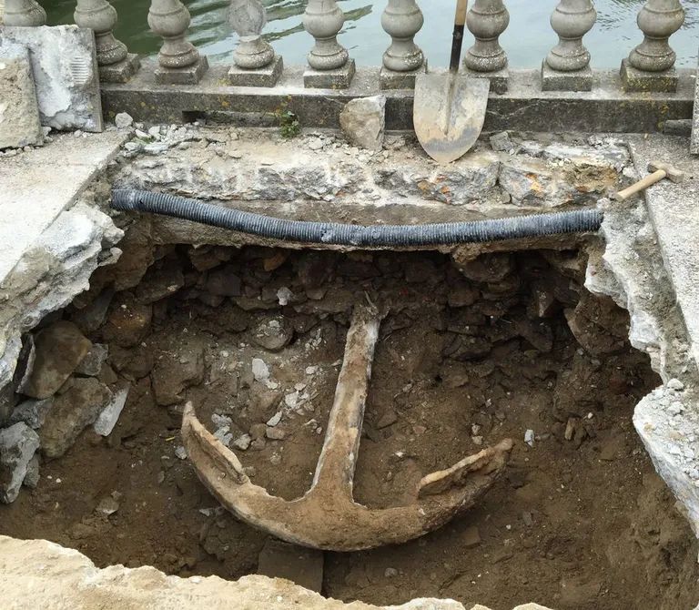 En Cedeira apañaron unha tamén hai 100 anos e fundirona cos bloques do peirao, deixando a amarra e o ollo cara fóra, para amarrar as chalanas.