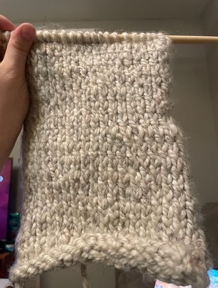 Trying to learn how to knit 😅 the edges are weird but I’m working to get the muscle memory down #knitsky #crafting