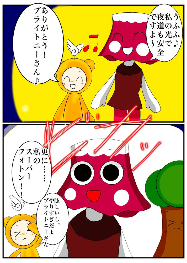 「スーパーフォトン」を発動して夜道を照らした。これが本当の眩しい笑顔。