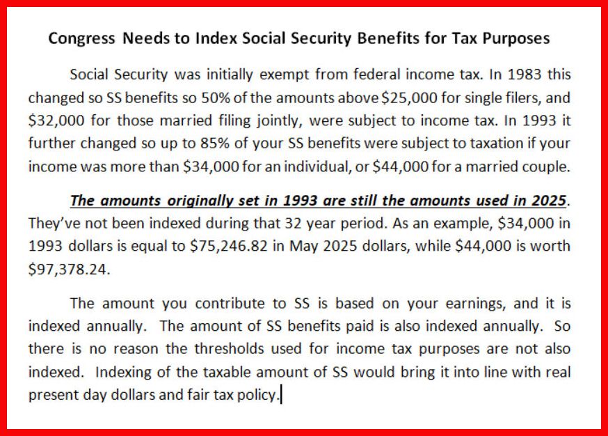 Congress Needs to Index Social Security Benefits for Tax Purposes