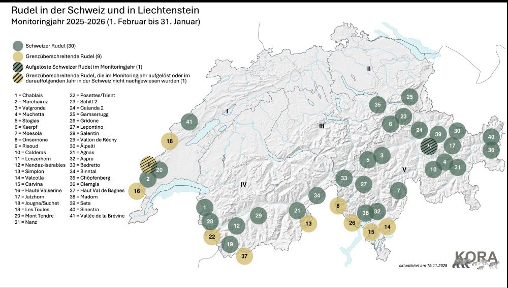 Im Rahmen der regulären Aktualisierung der Rudelsituation in der Schweiz und in Liechtenstein sind die aktuellen offiziellen Grafiken verfügbar.