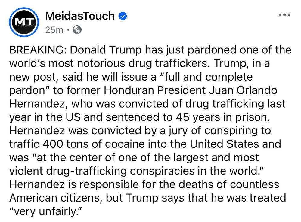 Also Trump: pardons a guy convicted of trying to bring *hundreds of tons* of cocaine into the US.
