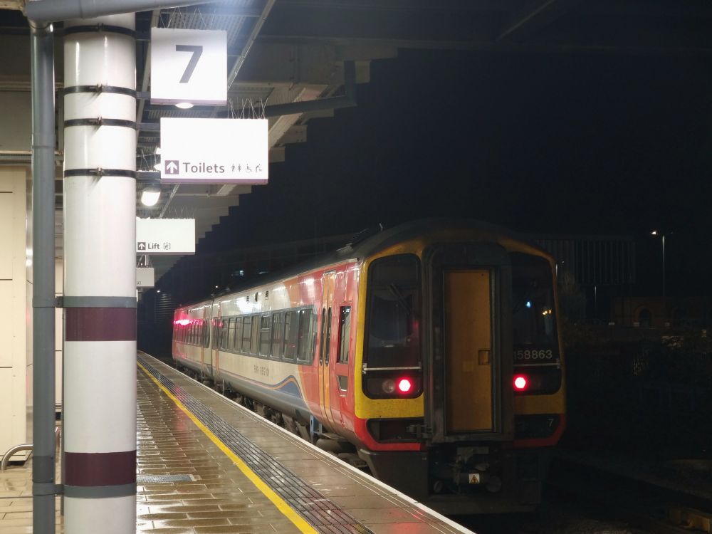 Suspiciously eerie earlier this Saturday evening, as my chariot home from Norwich awaits.