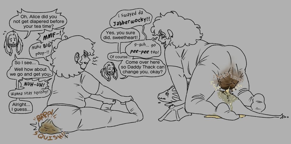 really quick sketches done in a depraved, horny stupor done a bit ago. syd doing what he does best, holly properly encouraging her.