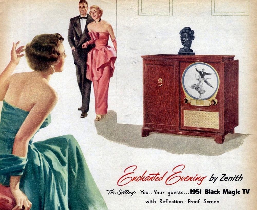 ‘The setting: You ... Your guests ... 1951 Black Magic TV with Reflection-Proof Screen’