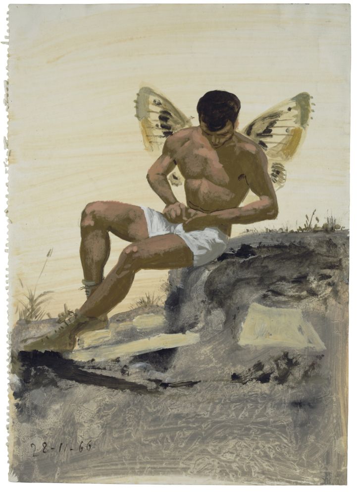 ‘Winged Spirit Buttoning His Underpants’