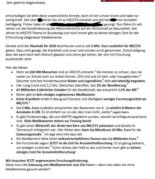 Ich bin ja wie 650.000 Menschen an ME/CFS erkrankt.