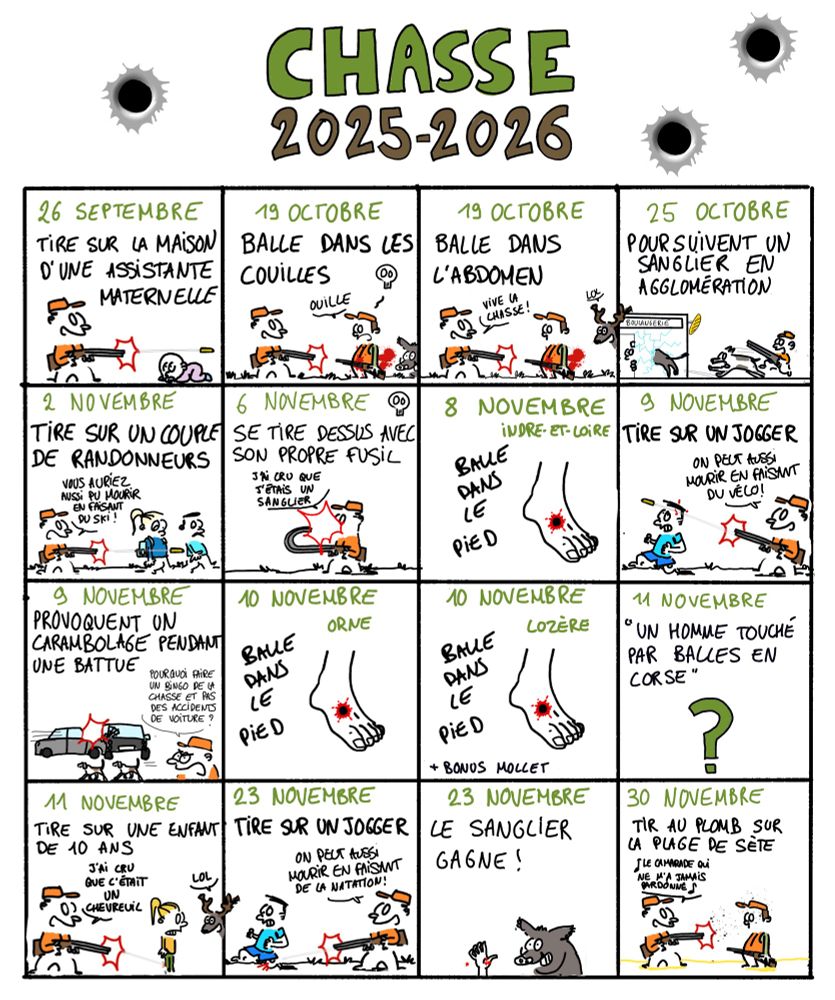 Les chasseurs ont rempli leur bingo des accidents de chasse saison 2025/2026 le 30 novembre 2025, battant ainsi leur record de la saison précédente où ils n’avaient réussi à le terminer que le 16 décembre !