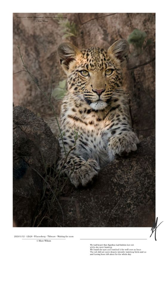 The cub did not move despite intently watching birds and us and having been left alone for the whole day.