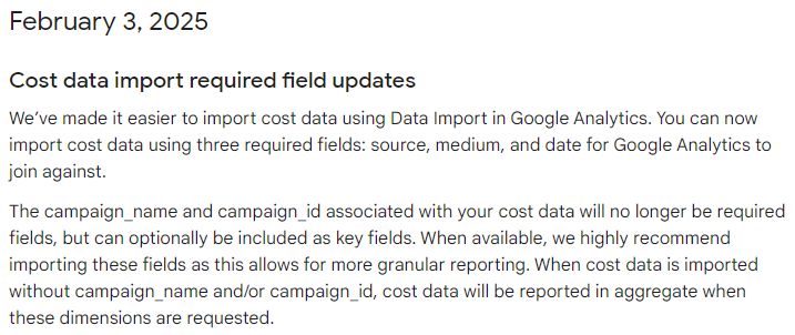 Now cost import will no longer need campaign_name and campaign_id.