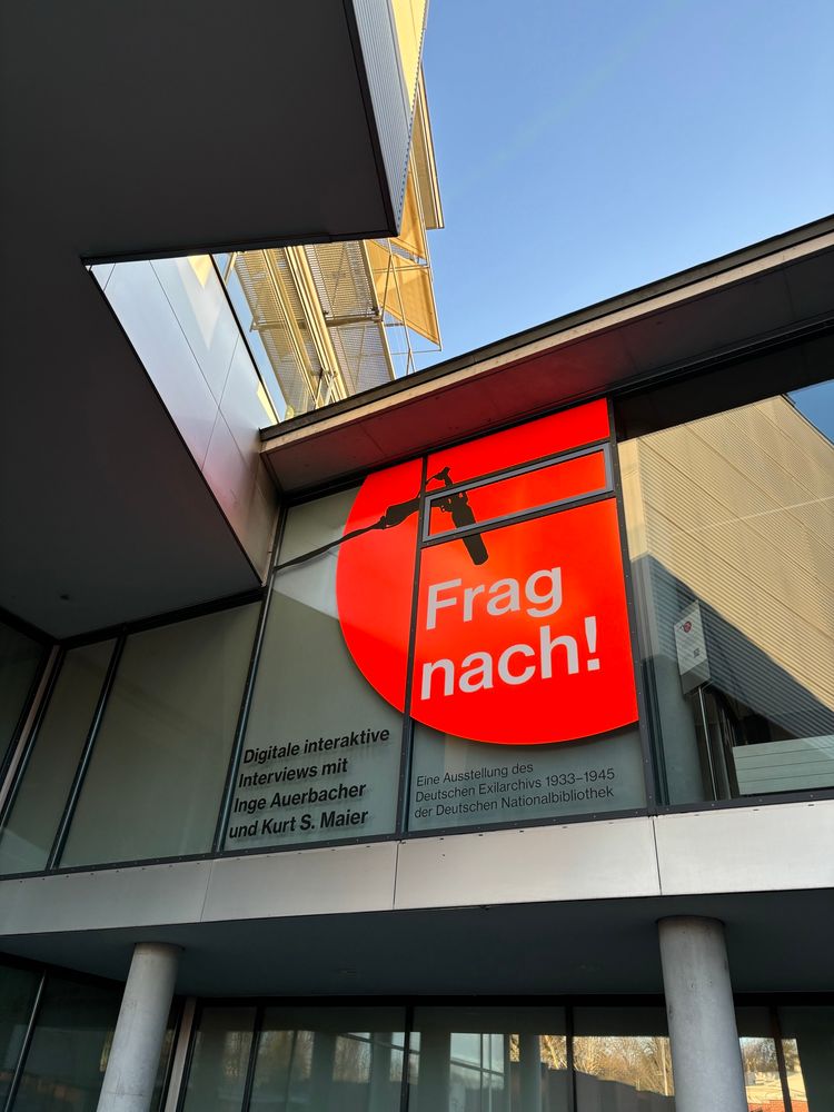 Wichtiges Projekt: im deutschen Exilarchiv 1933-1945 der @dnb-aktuelles.bsky.social in Frankfurt a.M. können digitale, interaktive Interviews mit zwei Zeitzeugen des Holocaust geführt werden. Mehr: fragnach.org Eintritt frei, fundierte Führungen, zielgruppengerecht - gestern etwa für mein Seminar.