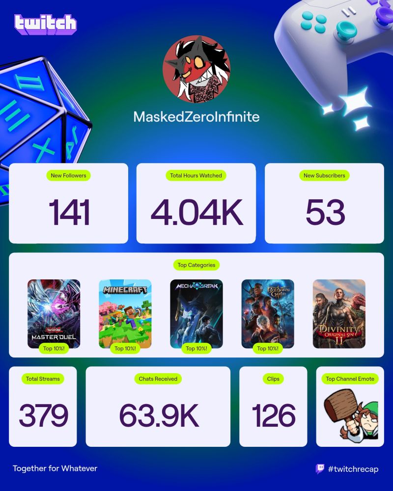 If you want to see my streams, check me out at https://www.twitch.tv/MaskedZeroInfinite