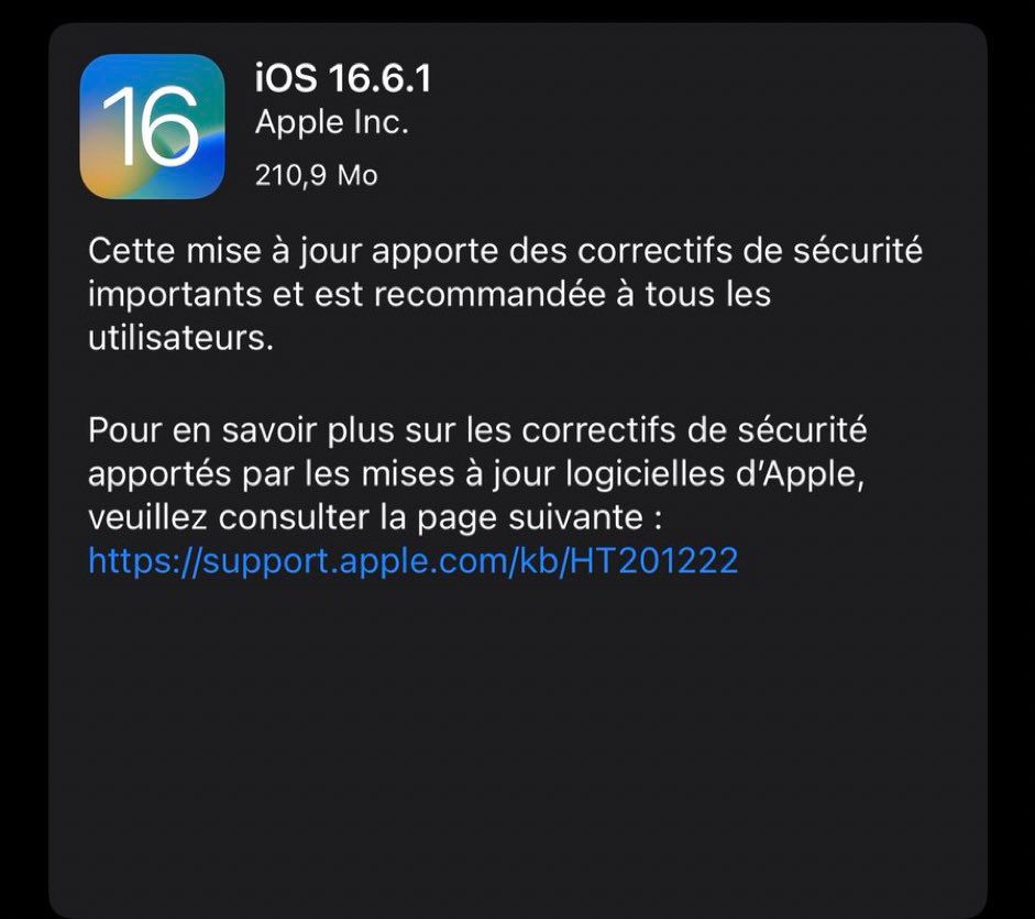iOS 16.6.1 corrige une nouvelle faille zéro-click exploitée par le spyware Pegasus