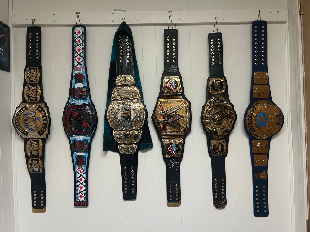 I love my wrestling. Belt collection. I want to get the tbs and women's belt next.