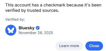 When clicking on the badge (e.g., attached), it should say "This person was verified by bsky to be a journalist at XX" or something to that effect