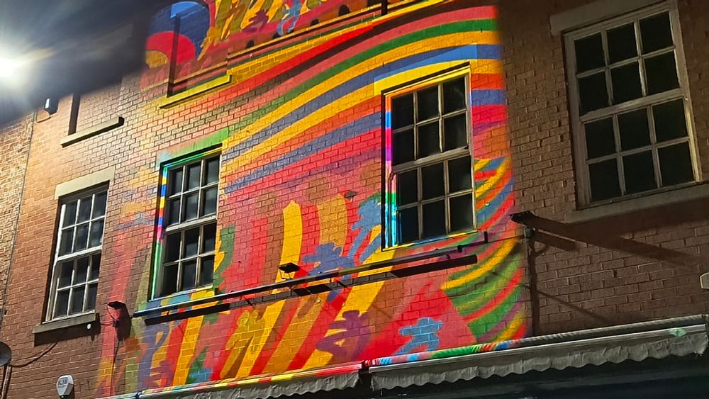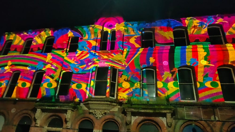 “Sight Lines” by Wigan and Leigh College alumni Venessa Scott, transforms King Street into a vibrant dreamscape of colour and light to bathe the street in bold projections that show the vibrancy of the area.