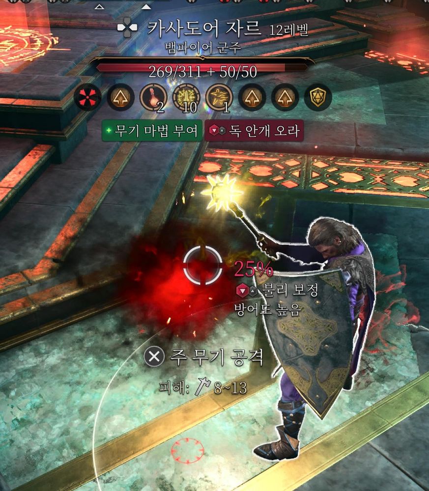 주문시전을 그만두고 맨손공격을 하는 뱀파이어를 잡으러온 주문시전을 그만두고 철퇴를 휘두르는 전직위저드